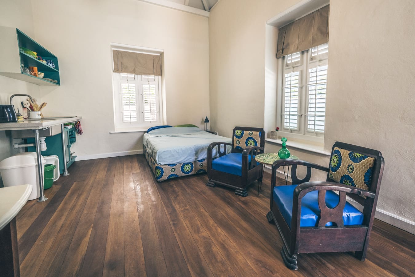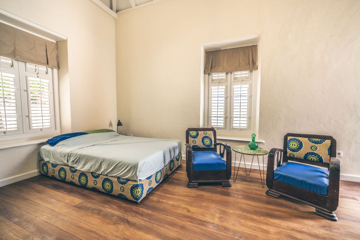 Cozy studio in recently restored monument in the heart of Otrobanda in UNESCO World Heritage City of Willemstad, Curaçao. The studio has a small kitchen, double bed, relaxing chairs, work space, bathroom with rain shower and a very nice private garden.